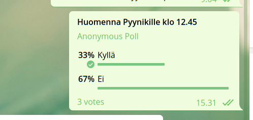 Päätimme koittaa, miten BVT:n avoin ryhmä Telegrammissa toimisi esimerkiksi Pyynikin pelien sopimiseen. Kaikki jäsenet olette tervetulleita avoimeen ryhmään, joka toivottavasti mahdollistaa matalalla kynnyksellä pelien sopimisen . Liity mukaan osoitteesta https://t.me/beachvolleytampere ja mahdollistetaan se, että Pyynikillä nähdään entistä useammin!